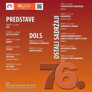 Februar u Bosanskom narodnom pozorištu donosi program prilagođen publici svih generacija. Na sceni će se smjenjivati predstave za odrasle i najmlađe, a poseban akcenat stavljen je na domaću produkciju, koja već godinama ima važnu ulogu u repertoaru ove kuće.