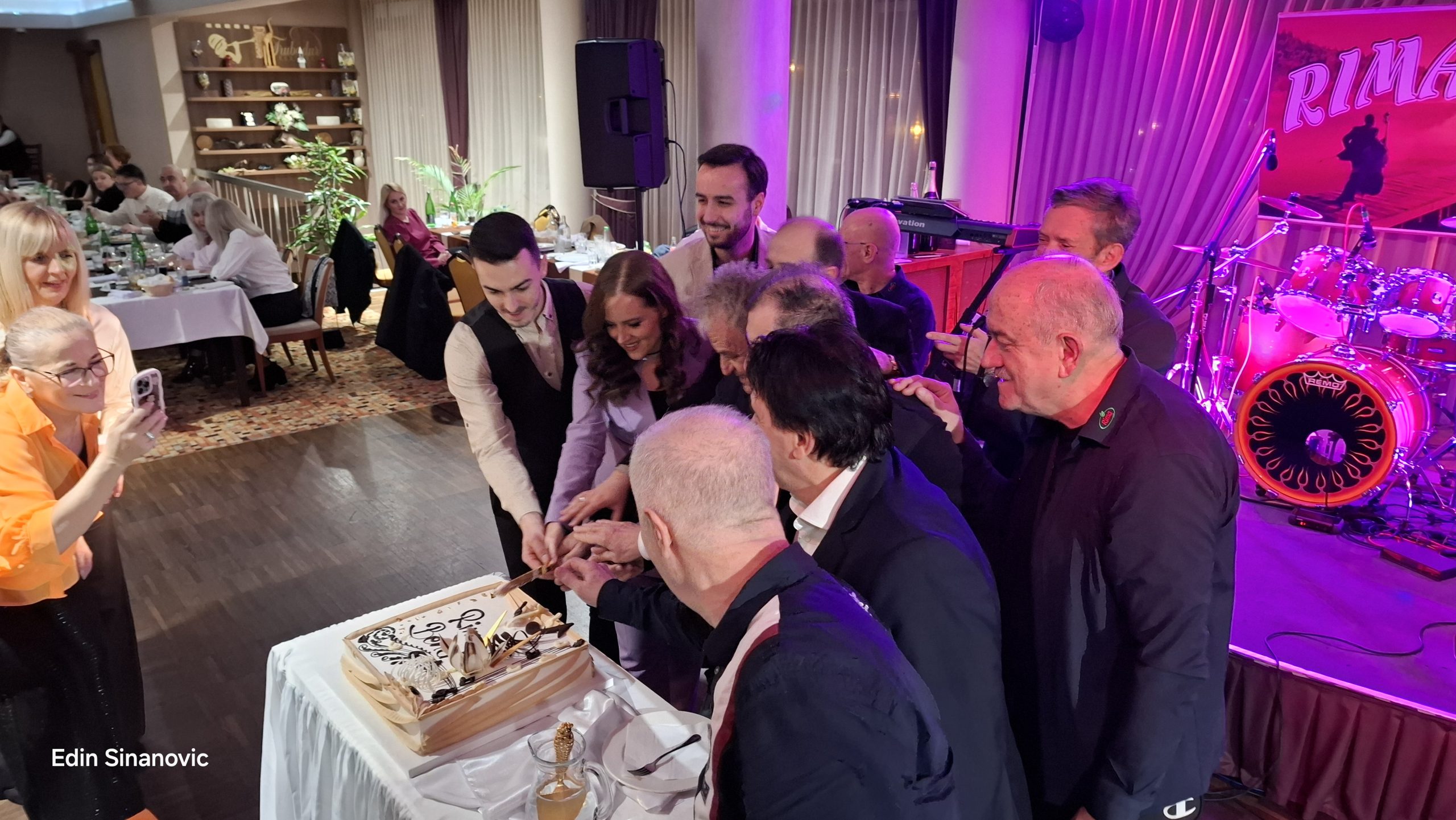 Poseban trenutak večeri bilo je svečano rezanje rođendanske torte s natpisom „Rima bend – 26 godina“, čime je simbolično obilježen veliki jubilej.
